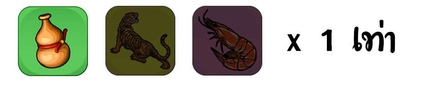 การแทงลูกเต๋าลูกเดียว ออก 1 ลูก คือ ผลลูกเต๋า 3 ลูก ออกถูก 3 ตัวที่แทงไว้ จะได้ ×1 เท่า ของชิปที่เดิมพัน